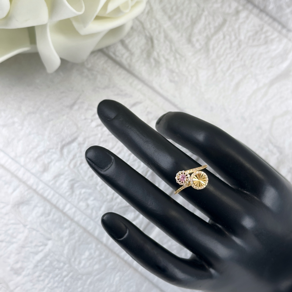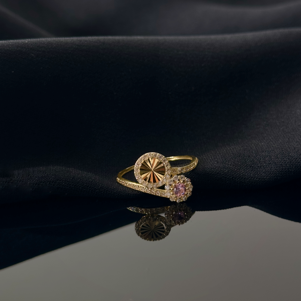 أضيفي لمسة من الرومانسية على إطلالتك مع خاتم الذهب عيار 18 بتصميم ورد زهري. تصميم يجسد الجمال الطبيعي بأناقة راقية ليكون رمزًا للأنوثة والجاذبية