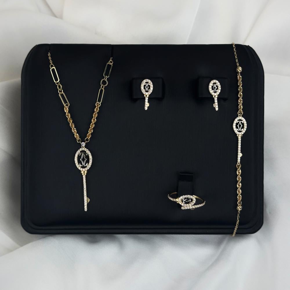 احصلي على طقم ذهب بتصميم عصري ومختلف عيار 18، يجسد الأناقة الحديثة بأسلوب فريد. اختيارك الأمثل لإطلالة تجمع بين الجرأة والرقي!